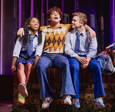 One of the primary areas where this occurs is in the overarching story of David’s experience in his school production of Oliver!, which seems to get lost in the middle third of the show. While the exploration of David’s journey to self-discovery is poignant and central to the narrative, from casting to opening night we see and hear little of this experience. Instead, we shift focus to day trips to Brighton, which, while I assume true to the novel, doesn’t always feel as integral to the musical’s central themes. This along with other subplots leads to the show meandering here, and at times, David’s journey takes a backseat to the exploration of his friends and other characters. Additional subplots that, while contributing richness and texture to the world of the production, also felt rushed, unnecessary or underdeveloped at times. The storyline involving David’s ‘girlfriend’ Abigail Henson, her struggles with boys, and the relationship dynamics of David’s parents are just a few examples of threads that, while providing some of the show’s most poignant moments—such as “On the Night Bus” and “Six Inches From Your Heart” also risk pulling attention away from the primary narrative. Similarly, the inclusion of the teachers’ political views and other peripheral characters adds layers to the story but can sometimes feel tangential, overcrowding an already complex narrative. I fully understand the creative decision to include these subplots, as they certainly bring depth to the production, adding emotional complexity and texture to the world. However, in their attempt to weave in so many different layers, the central plot sometimes gets lost amidst them, leaving the audience yearning for more focus on the key plot and the resolution of David's journey.