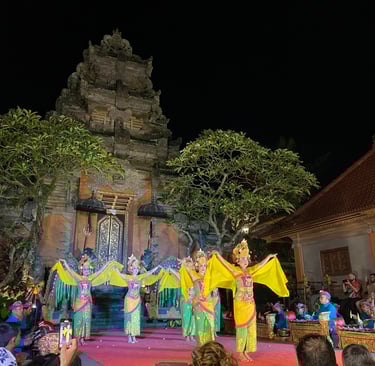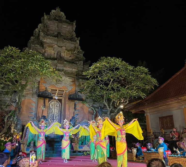 While I don’t feel qualified to formally critique the performance, I was genuinely blown away by the experience - from the ornate setting of Ubud Palace and the lavish costumes to the storytelling and atmosphere. What stood out most to me was the live Gamelan orchestra, whose layered and rhythmically complex music creates a hypnotic and spiritual ambiance. Watching the dancers move in perfect synchrony with such intricate melodies and percussive patterns was nothing short of extraordinary. It was a rich cultural immersion I’ll never forget.