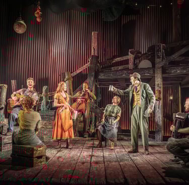 Immediately this musical sets itself apart with the entire orchestration being played by the actor-musicicans making up the ensemble and principle cast. Each member of the cast exceptionally navigates the ability to simultaneously act, sing, dance and play for the duration of the show which is undeniably impressive. Whether it be percussion, string, brass or keys, the cast navigate every performance element of the show together from the first to last beat of music.